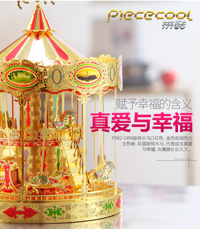拼酷就用金屬材質(zhì)將夢幻的旋轉(zhuǎn)木馬呈現(xiàn)出來,那么拼酷的P082-GRN旋轉(zhuǎn)木馬的魅力到底有何特別之處呢?