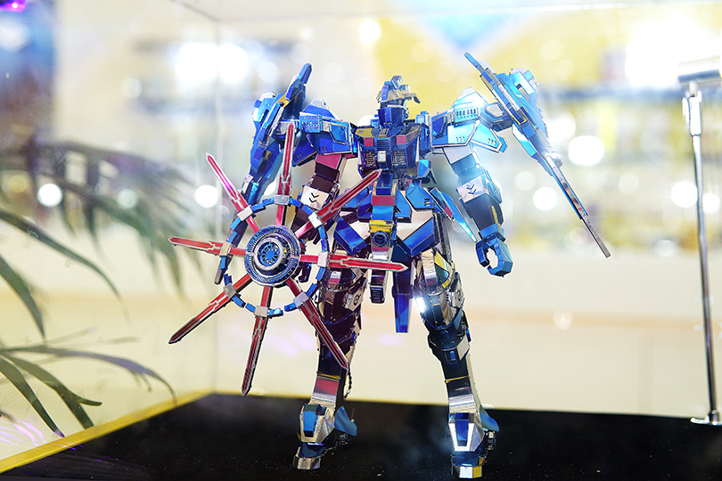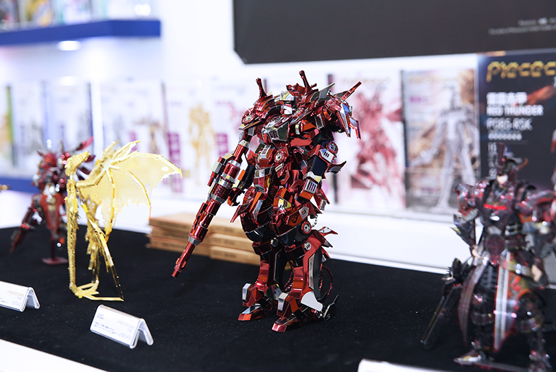 展會上的精彩亮點,當然少不了炫酷金屬模型!7米超長沙盤,浩浩蕩蕩的模型隊伍,相當吸睛。上面展出的模型足足有一百多款,巔峰之作雷霆赤甲和史詩級巨作磁旋藍甲在眾多模型中尤其突出,讓人一眼難忘。除了拼酷在售的模型之外,還有一些特別定制版模型,如澳門的大三巴、東莞籃球中心等等。在線觀眾都被精致的模型所折服,紛紛為拼酷瘋狂打call!